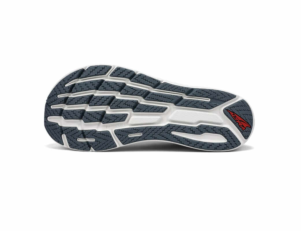 Az Altra Torin 7 futócipő külsőtalpa nem fedi le egészében a középtalpat, leginkább a lábfej csontjainak formáját követi. Ez az elrendezés nem teszi túl merevvé a cipőt, viszont pont azokon a helyeken ad védelmet, ahol leginkább igénybe van véve a cipő külső talpa. A felhasznált gumikeveréknek és a külső talp bordázatának köszönhetően a Torin 7 tapadása kiváló száraz és nedves felületen is, de akár könnyebb terepfutásokon is megállja a helyét