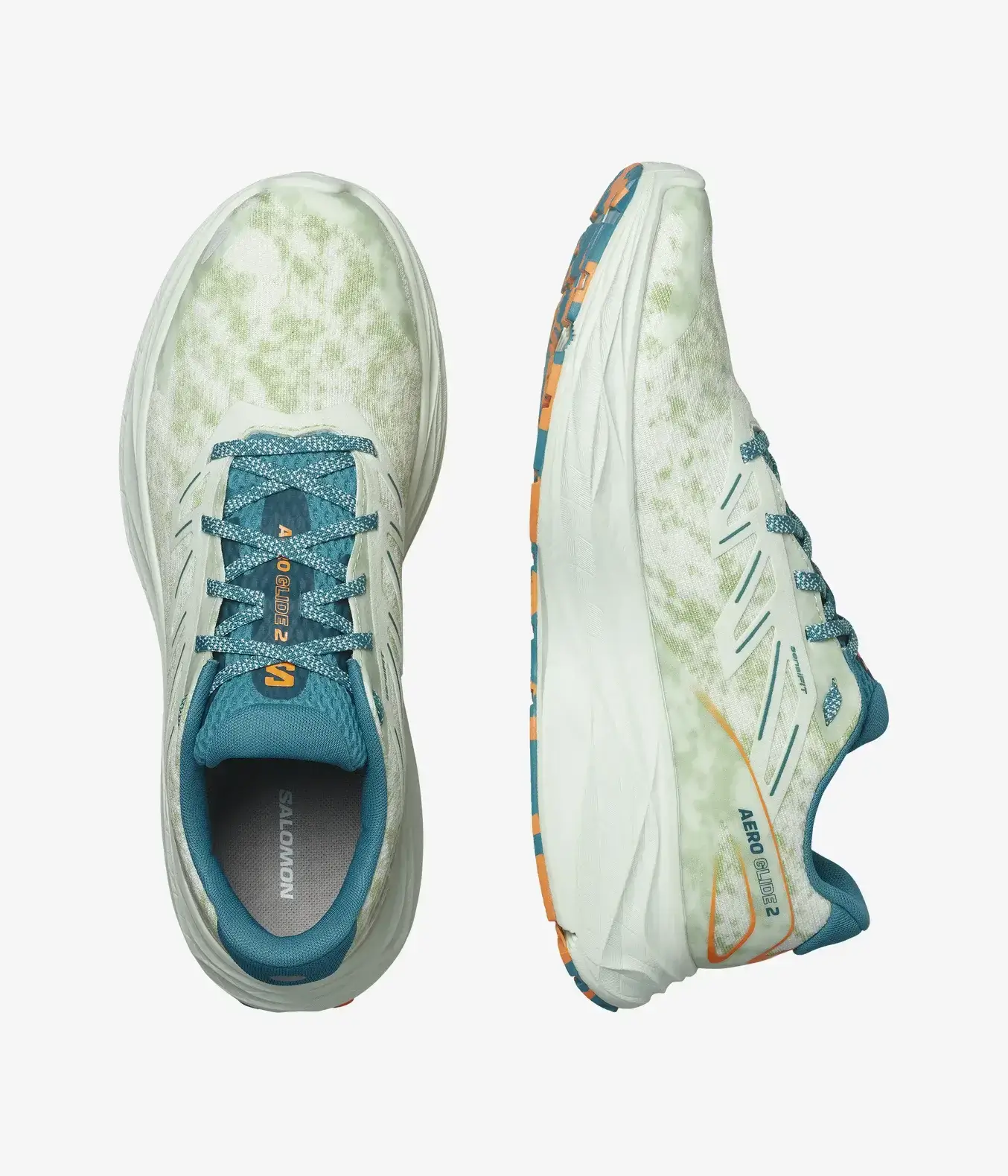 A Salomon Aero Glide 2 futócipő középtalpa szinte megegyezik az előző verzió középtalpával, egy EnergyFoam fantázianevű habból áll, amely EVA és Olefin hab kombinációja. Az EnergyFoam egy rendkívül kényelmes puha hab, amiben van némi dinamizmus, de inkább lassabb, nyugodt tempóra való. A középtalp szélesebb az átlagosnál, ami fontos a stabilitás miatt egy ilyen magasan párnázott futócipőnél. A saroknál 37,4 mm, a lábujjak alatt 27,4 mm vastag a középtalp 10 mm-es drop-pal. A magas drop a sarokra érkezőknek kedvez, leginkább ők fogják tudni értékelni a magas párnázást. Ahogy korábban, most is Reverse Camber geometriával rendelkezik a középtalp, ami azt jelenti, hogy felfelé hajlik a lábujjak alatt, ezzel egy ringó, bölcső szerű hatást vált ki, hogy gyors és sima legyen a lábfej átgördülése a talajon. Bár a Salomon Aero Glide 2 inkább a lassabb, hosszabb futásokra van optimalizálva, résztávos edzéseken, ahol vannak gyorsabb szakaszok is jól teljest, ha nem is a legjobban.