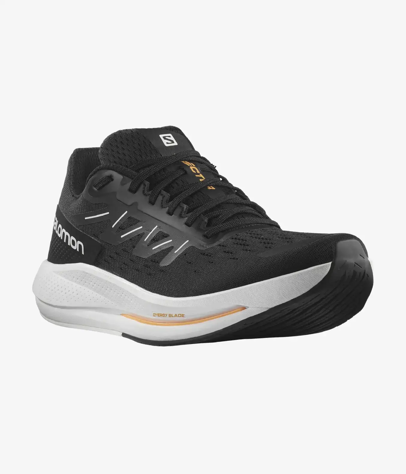 A Salomon Spectur futócipő középtalpa az Energy Surge nevű EVA habból készült, aminek a közepén egy üvegszálas, villa alakú lemez található, aminek a Salomon az Energy Blade nevet adta, és jól látható a középtalp oldalán (vékony narancssárga vonal). Az üvegszálas villa a talp közepétől indul a lábfej eleje felé, így a lábfej első részéről való elrugaszkodásnál lehet a leginkább érezni, hogy segíti az elrugaszkodást. Az Energy Blade alatt és felett található hab sűrűsége, puhasága nem ugyanolyan. A felső réteg puhább, ami nagyobb kényelmet ad, az alsó réteg pedig keményebb, amitől dinamikusabb, gyorsabb és stabilabb lesz a cipő. A középtalp geometriája segíti a gyors és sima átgördülést, az orr részen felfelé hajlik (ez a jól bevált Salomon Reverse Camber geometria). A középtalp átlagos magassága 24,5 mm, 6 mm-es droppal, ami inkább a lábfej elejére érkezésre ösztönzi a futót, az üvegszálas betét is a lábfej elülső részén ad plusz dinamizmust, de a nehezebb sarokrész miatt lassabb tempónál inkább sarokra érkezésre ösztönöz. A kétrétegű hab és az üvegszálas betét összessége egy inkább keményebb középtalpat alkot.